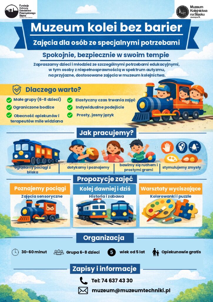 Muzeum Kolejnictwa na Śląsku tworzy przyjazną przestrzeń, w której każde dziecko może poznawać świat we własnym tempie. Będzie nam bardzo miło gościć Państwa oraz Państwa Uczniów!